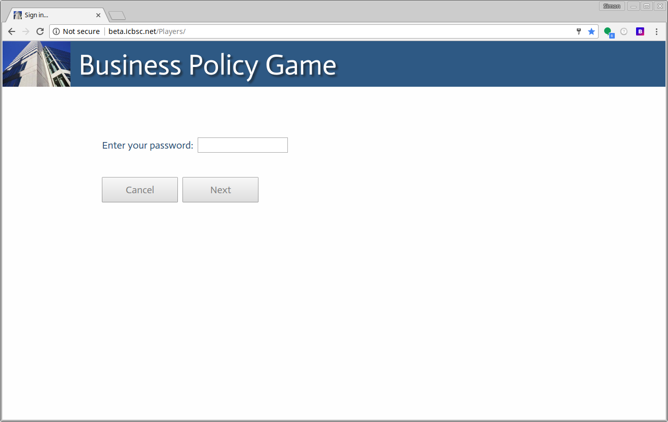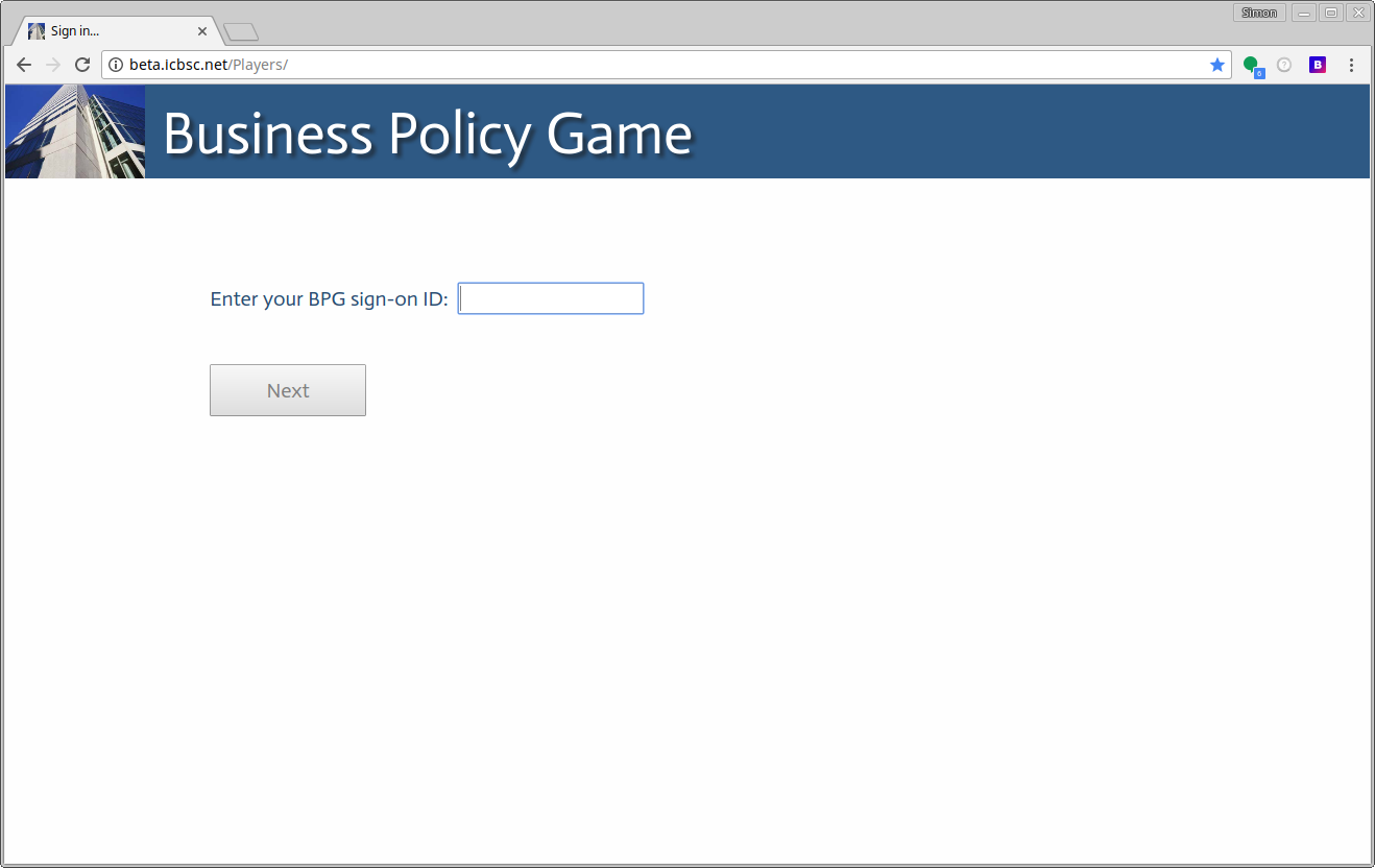 Your instructor will have given you the sign-on ID and a initial password for your team. Enter the sign-on ID on this screen.